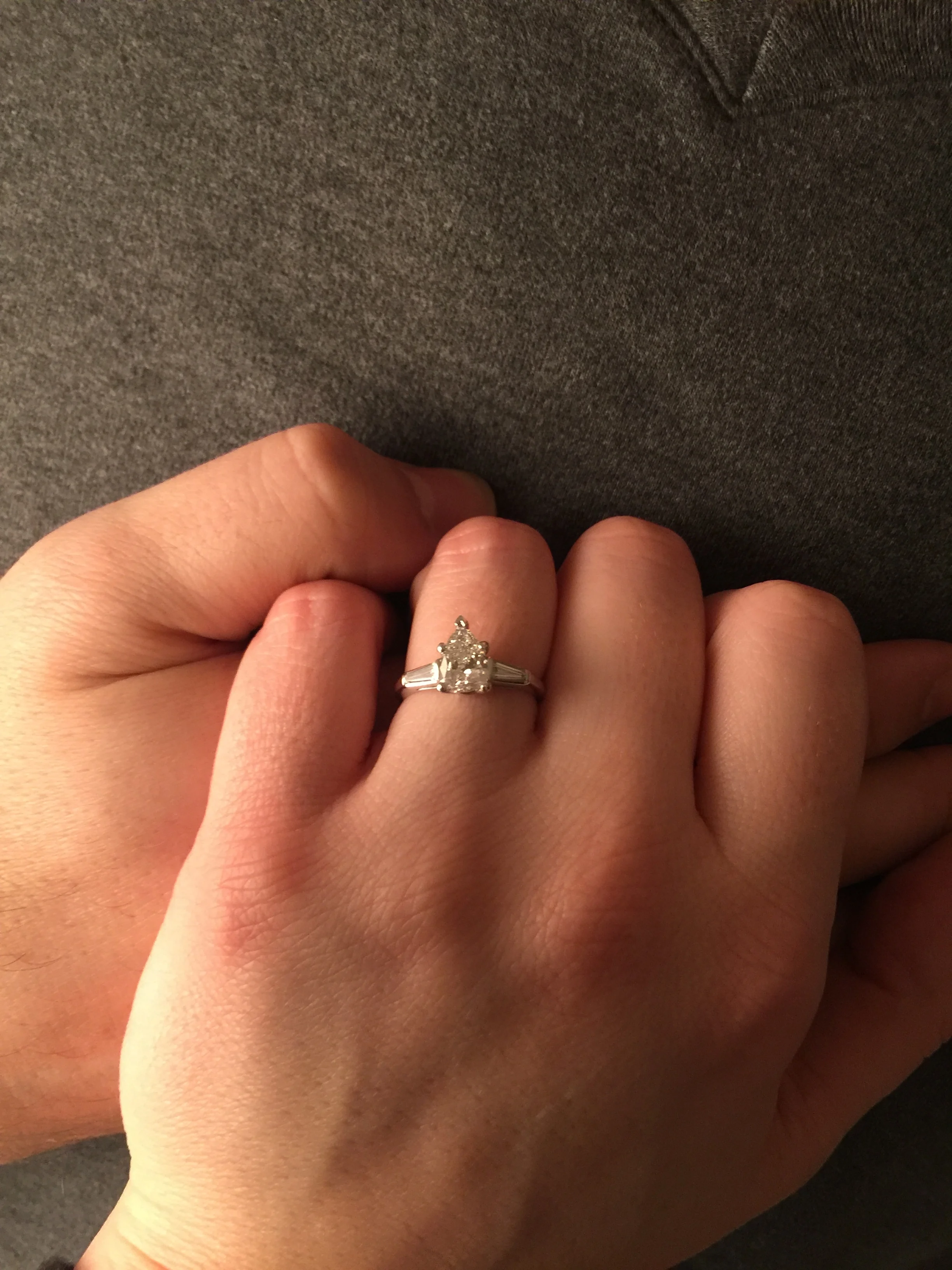 When she turned to Mark again (secret note reading always requires one to turn their back) she was amazed to find him on one knee, holding a ring box. The diamond inside was pear-shaped and exactly what Jackie wanted. As you can imagine, she said yes (after asking Mark to repeat the question!) and they celebrated with Turkish delights and beer and ring selfies.